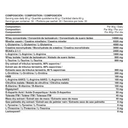 Alta densidad anabólica: creatina 200 Mesh (3000 mg), glutamina, BCAA, HMB, citrulina malato y beta alanina.